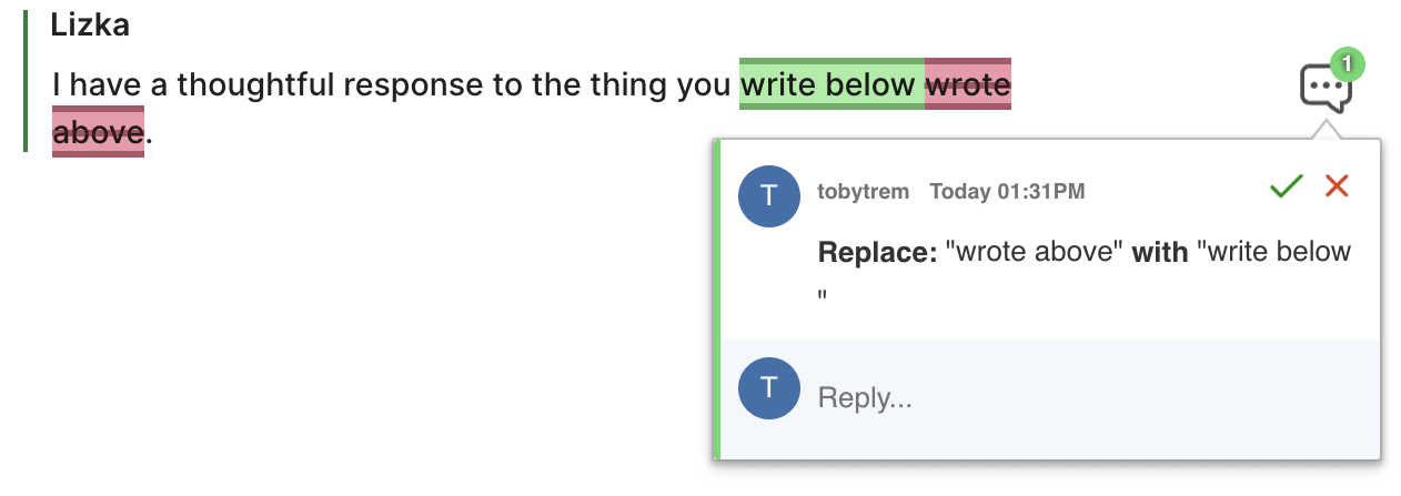 - Suggest edits to the other participants' comments by typing in their writing box or in one of their already submitted comments.