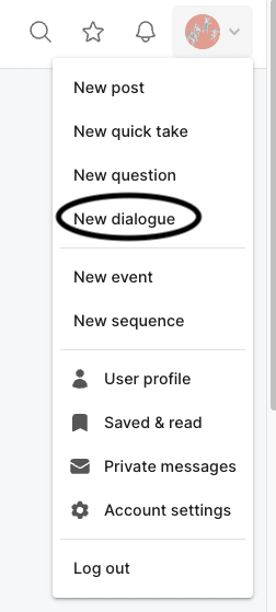 To create the dialogue, hover your mouse over your profile in the top right corner.
