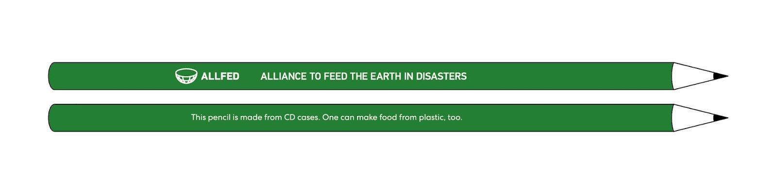 - We have put a fun twist into our science communications with conversation-starting workshop materials. Check out these new ALLFED pencils which read: “This pencil is made from CD cases. One can make food from plastic, too.” Do feel free to ask if you are curious about the scientific basis for this. :)