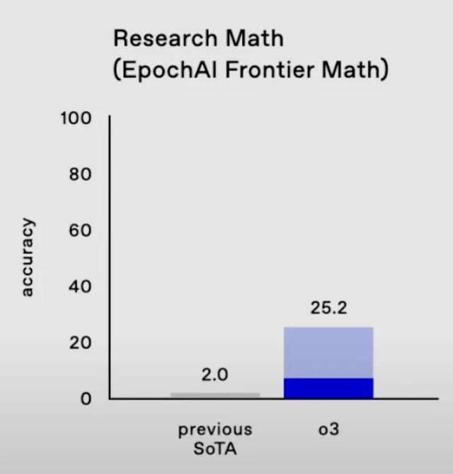 Previous models, including GPT-o1, could hardly solve any of these questions.[5] OpenAI claimed that GPT-o3 could solve 25%.[6]