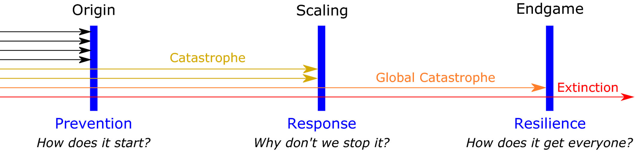 Three broad defence layers, from Defence in Depth Against Human Extinction: Prevention, Response, Resilience, and Why They All Matter by Owen Cotton-Barratt, Max Daniel, and Anders Sandberg.