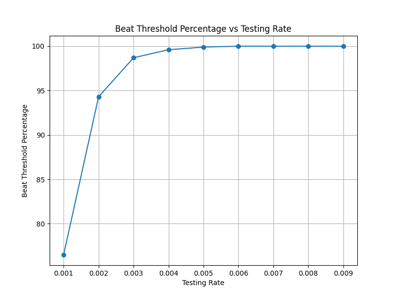 Thirdly, it is clear that the benefits of early detection are probabilistic. However, especially for those concerned about low-probability high-consequence tail risks, I think the scale in question should concern us. Ideally, we should not be content with a 5% chance of a detection system failing us for a GCBR. However, taking my measles model above, if I try and find values for what percentage of the population is tested every day such that this gives us a 99% chance of detecting the pandemic, this works out to 0.4% of the population being tested at random every day: