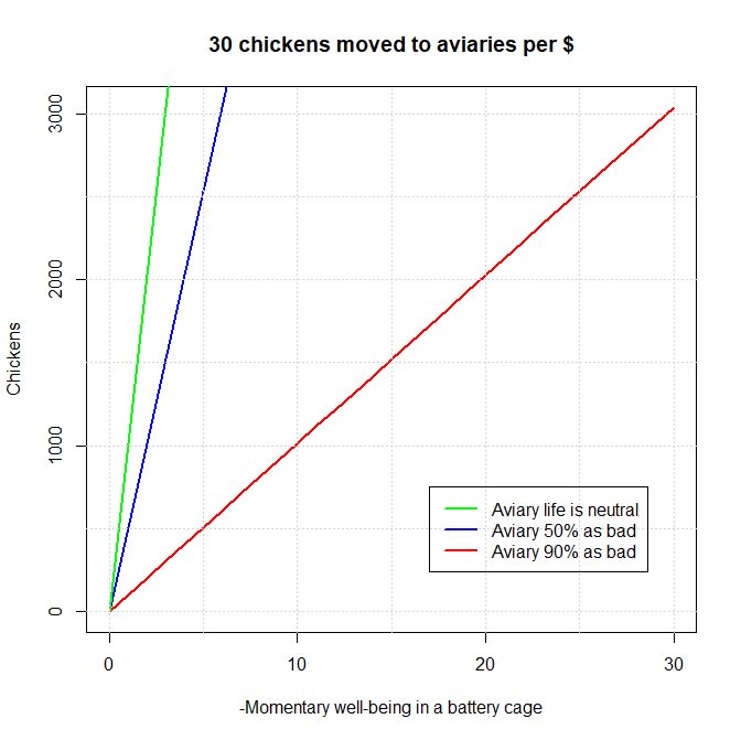 - It rarely matters how much better aviaries are than battery cages, assuming aviaries are at least 30% better than battery cages