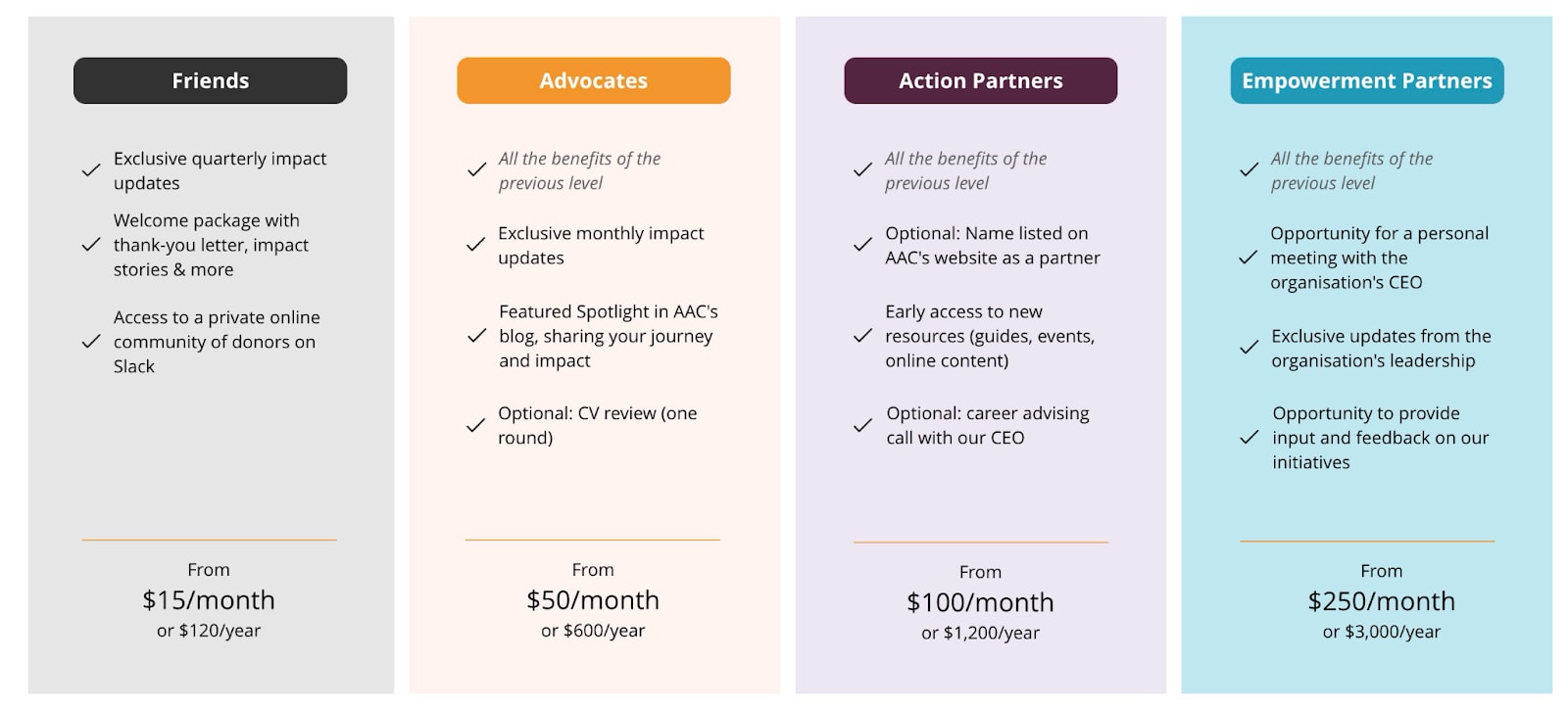 In case you are interested in AAC’s impact updates and which of the above programmes we have continued, we recently published our annual report for 2023 and an update on the status of our programmes.