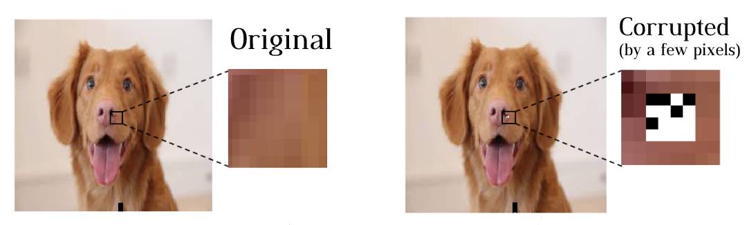 Often, bad actors will choose corrupted data that's difficult for humans to notice. Here are some examples of corrupted image and text data.