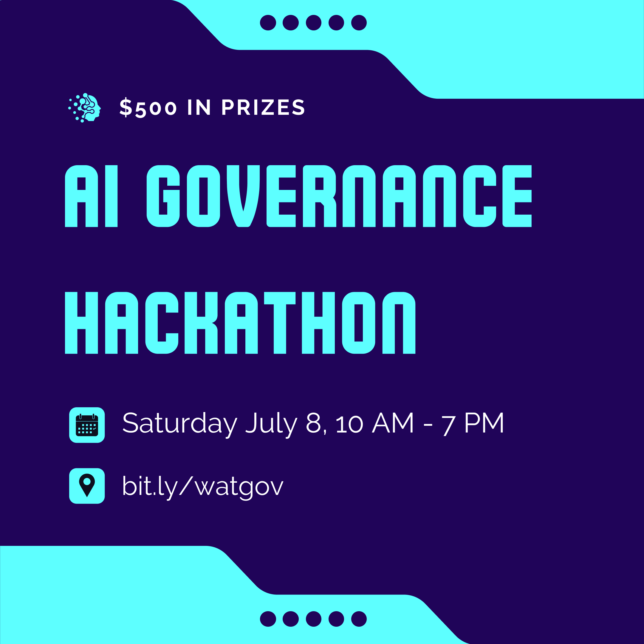 Logistics wise, the hackathon is Saturday, July 8th, 2023 from 11 AM EST to 7 PM EST. Around 20 students will be proposing policies to improve AI governance at the University of Waterloo in Canada.