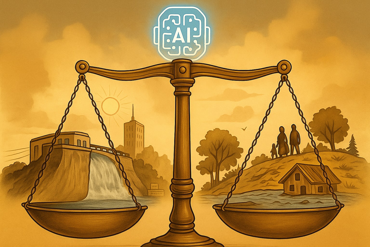 To ground these parameters, picture a policy dilemma: should an AI‑governed society construct a hydroelectric dam? We postulate two ethical views — S₁ (short‑term focus, narrow moral circle) and S₂ (long‑term focus, broad moral circle) — and trace how their δ and w coordinates lead to contrasting recommendations.