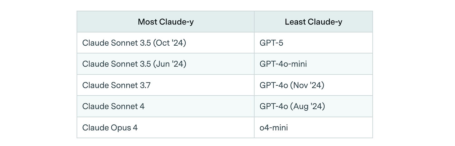 But I showed it to a colleague and he just said, “it’s Claude”. He was right. Here are the top five models on this component, as well as the bottom five.