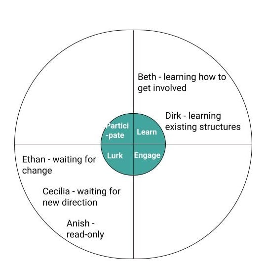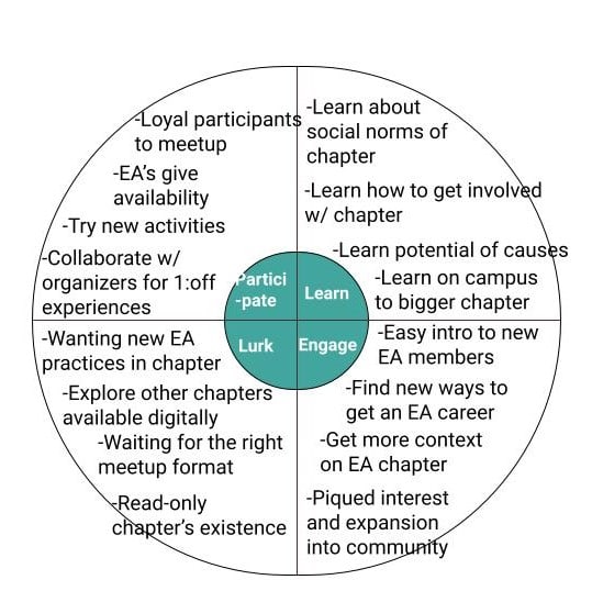 - Where in the consumption cycles would you like to be in the EA community? Lurk, Engage, Learn, or Participate?