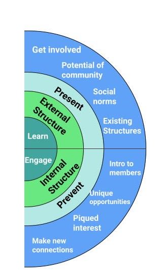 To Engage in a community is to overcome the first barrier to entry into a community. Engage is based on preventative structure. This is penetrated through low-tiered participation where the community consumer is able to navigate potential opportunities if they continue to up their participation.