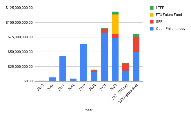 - A lack of good funding opportunities, e.g. there just weren’t that many organizations that could effectively use a lot of money and were clearly trying to reduce catastrophic risks from AI.