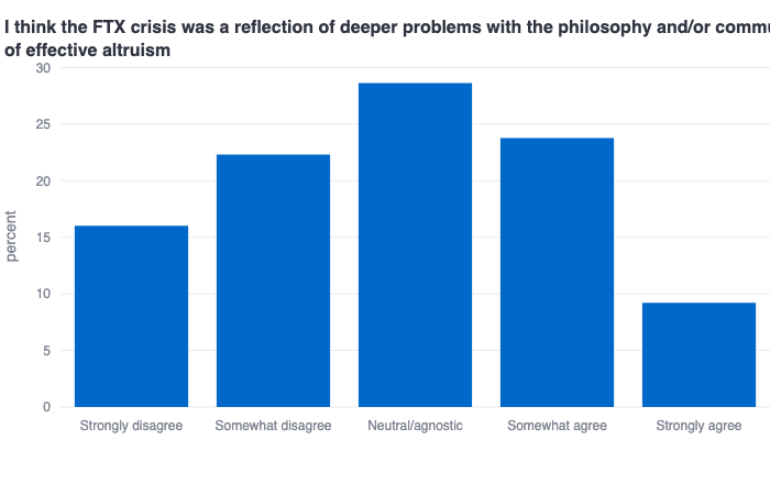 In addition to cause/research area prioritization, we asked both communities to share the extent to which they agreed with a number of claims specific to their respective communities. All of these distributions are available here; in this section, we will only highlight and comment on what we think are the most relevant couple of results for each community.