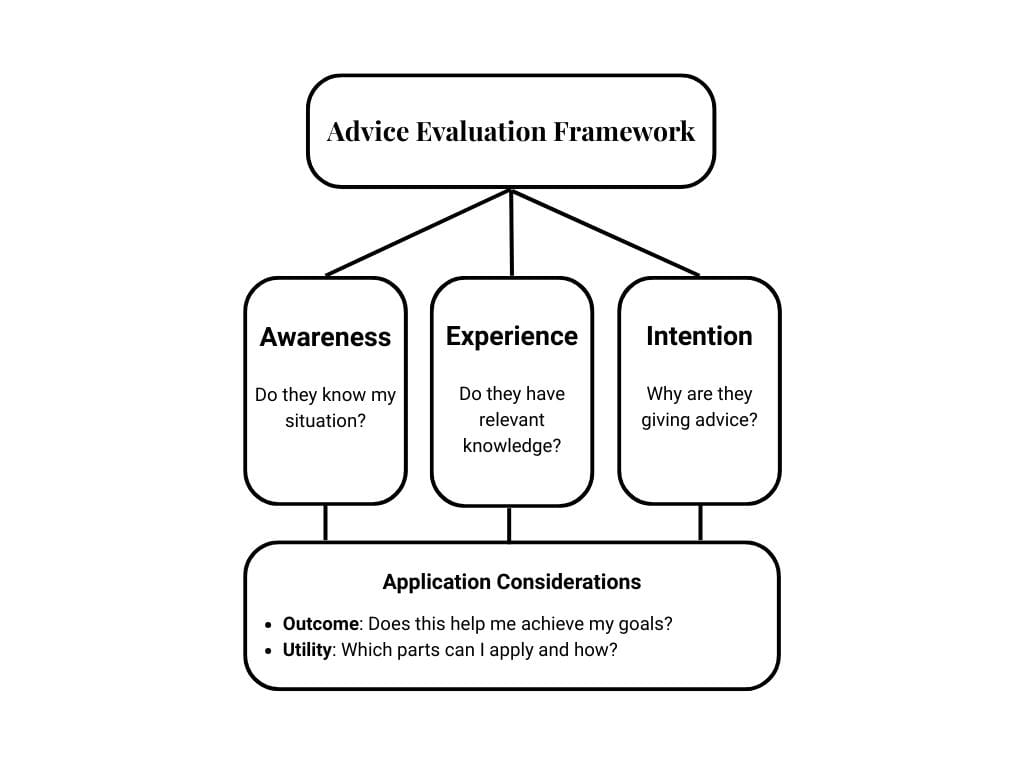 Below you'll find a framework for evaluating advice, and a link to a workbook version you can copy and use. For more detailed information, see the full 'Advice on Advice' article.