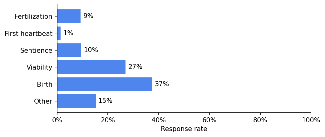 Our results suggest that US bioethicists overwhelmingly believe that abortion is ethically permissible, and it's thus possible that their responses to the "A being becomes a person..." question were influenced by their views on the permissibility of abortion and wariness about how concepts of personhood are being used to restrict access to reproductive care.