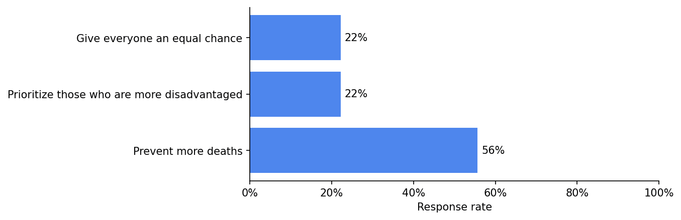 - We also surveyed bioethicists about issues related to research ethics (e.g., challenge trials; information hazards). These results will be published separately.