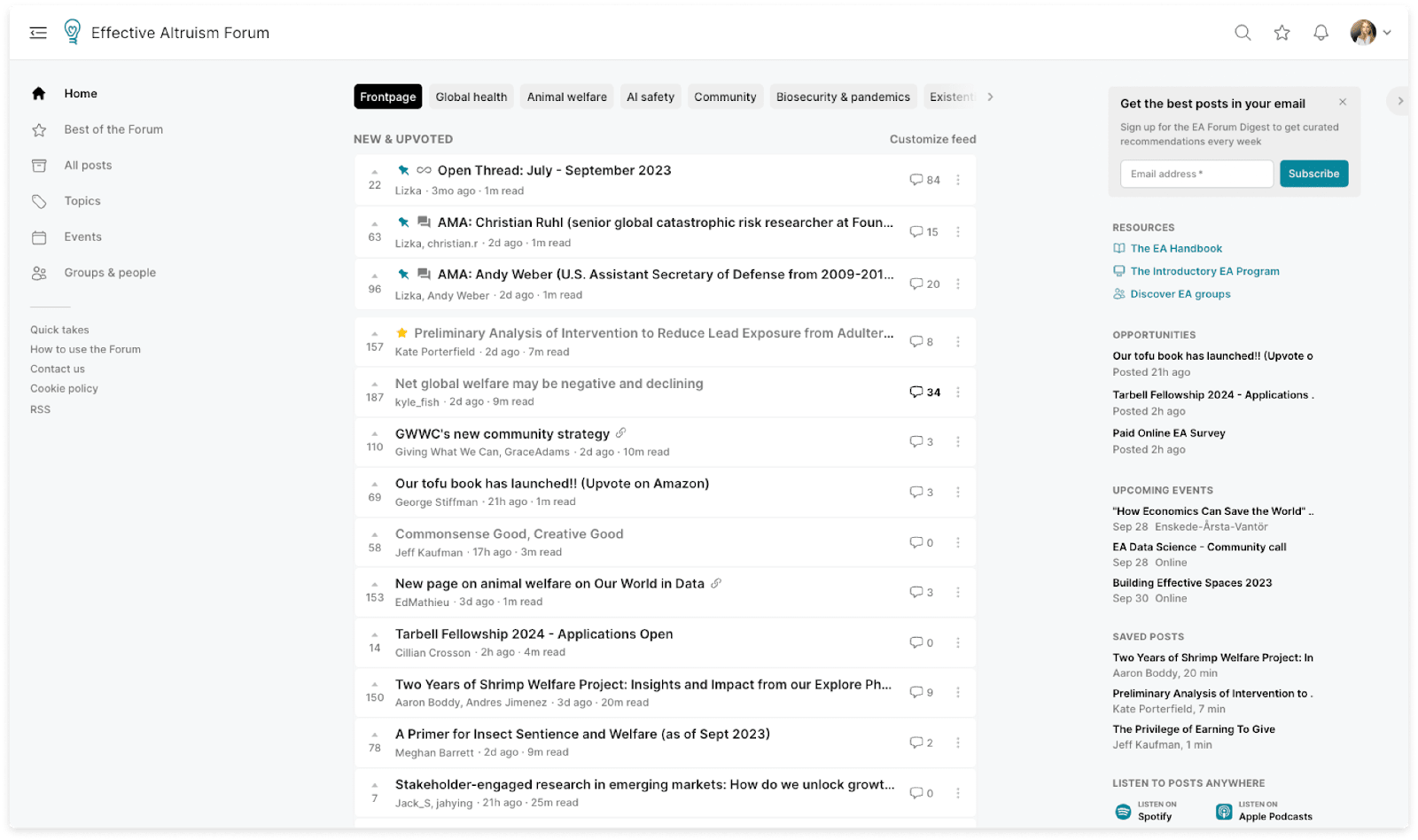 We’ve added a right sidebar to the Frontpage to highlight resources and make it easier to find opportunities and events (we'll add and remove resources based on usage and feedback). Logged in users can hide the sidebar, and you can update your location to get better event recommendations.