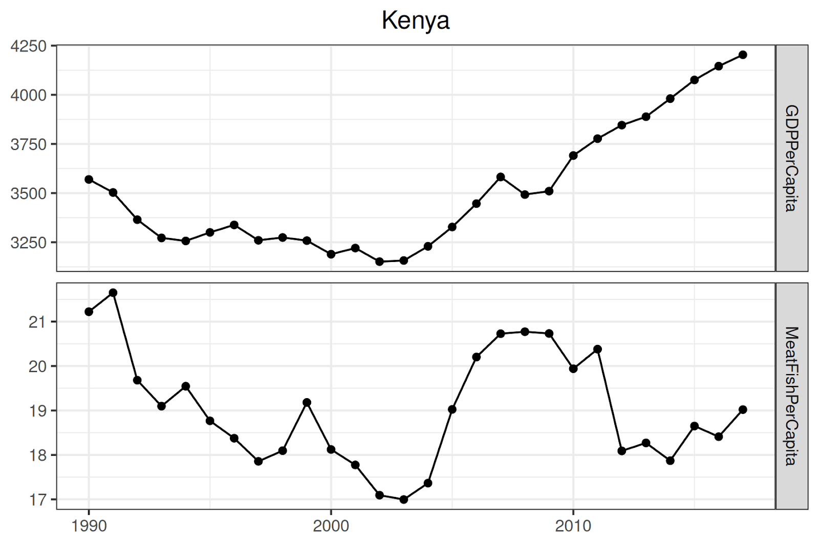 - We limited this analysis to countries with at least 3 years with data for both GDP per capita and meat consumption per capita.
