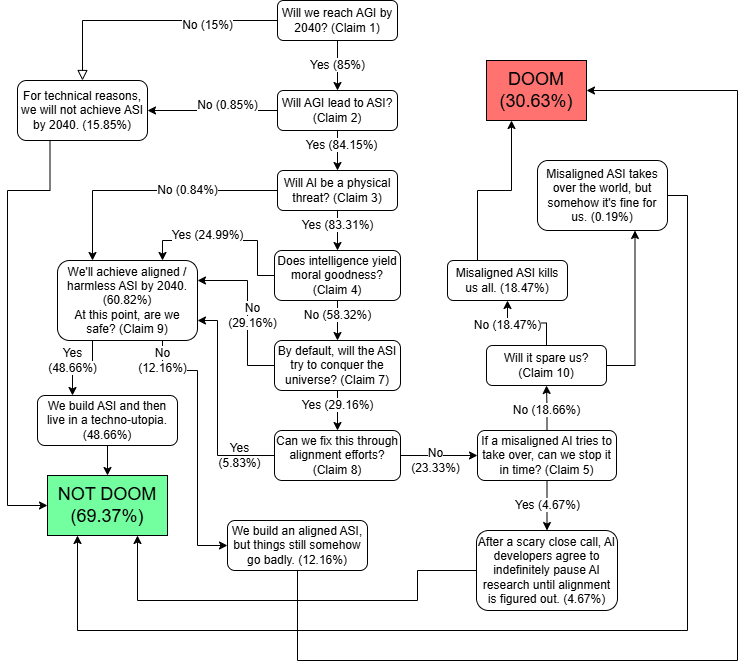 Per the flowchart above, my baseline P(doom) is 30.63%.
