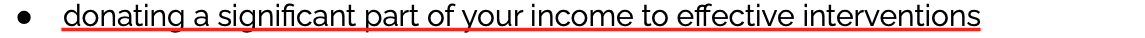 I stated I became a physician based on the EA dogma of “Earning to Give” (ETG) the time, which took 9 years of my life to see to completion. I didn’t elaborate more because I figured that would be sufficient for this criteria.