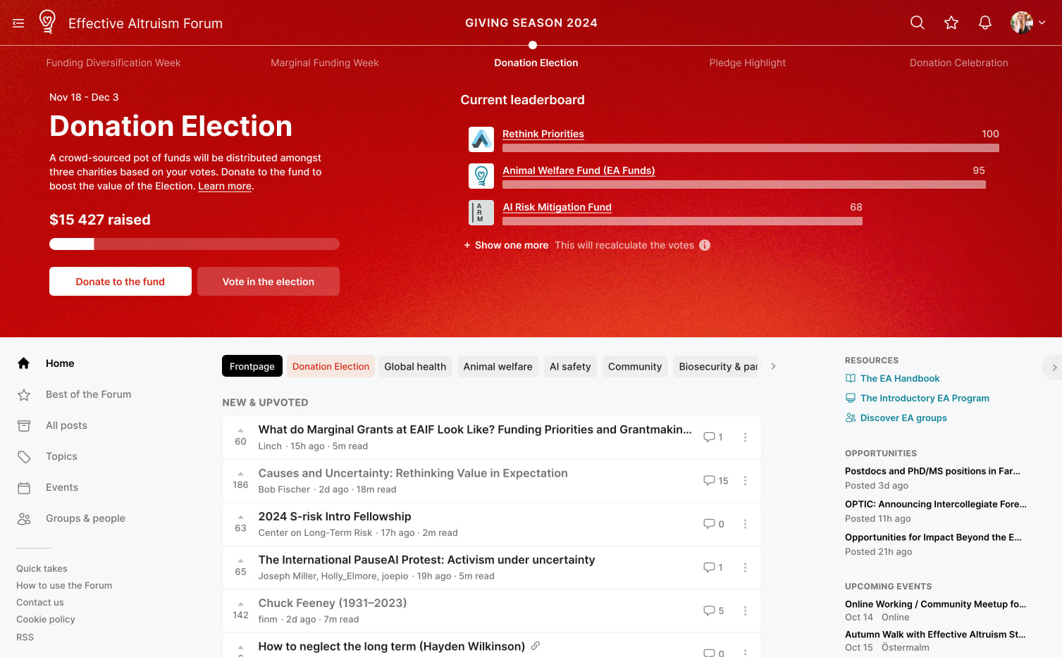 Voting for the 2024 Donation Election will open on the 18th November, and close on December 3rd. Anyone with an account that existed before 22nd October will be eligible to vote.
