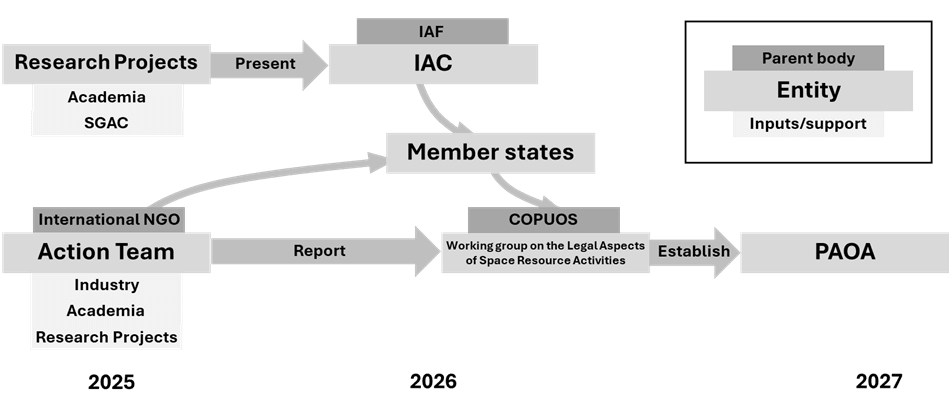 This action team would operate impartially with the facilitation and championing by an international NGO like the Hague Institute for Global Justice or the International Institute of Space Law. The team’s findings would culminate in a report presented to COPUOS for discussion and, ideally, endorsement.