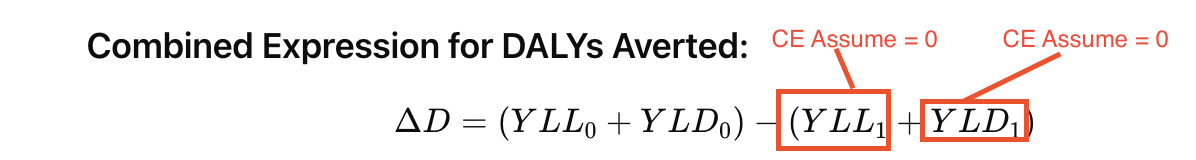 DALYs averted = Without Intervention (Years of life lost + Years Lived With Disability) - After intervention (Years of life lost + Years Lived With Disability)