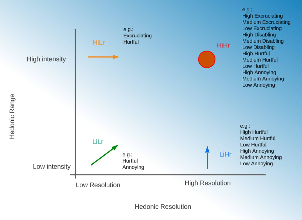 Those configurations may support adaptive function, but they differ significantly in welfare implications. Those that depart from low intensity ranges, (LiLr) and LiHr), suggest that primitive sentient organisms, including those extant today, do not experience concerning Pain levels. By contrast, pathways that depart from high intensities (HiLr and HiHr) imply that even primitive sentient organisms could experience extremely intense Pain, expanding extraordinarily the range of organisms capable of suffering at morally concerning levels. Distinguishing between those pathways requires methods focused on the presence of resolution and on the magnitude of affective intensity.