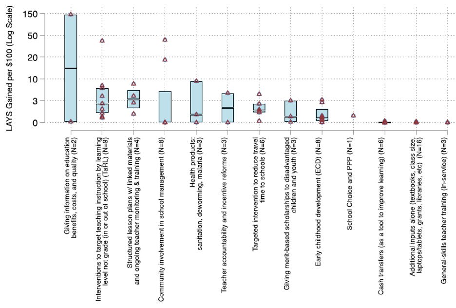 Look at this chart of the cost-effectiveness of various developing-world educational interventions:
