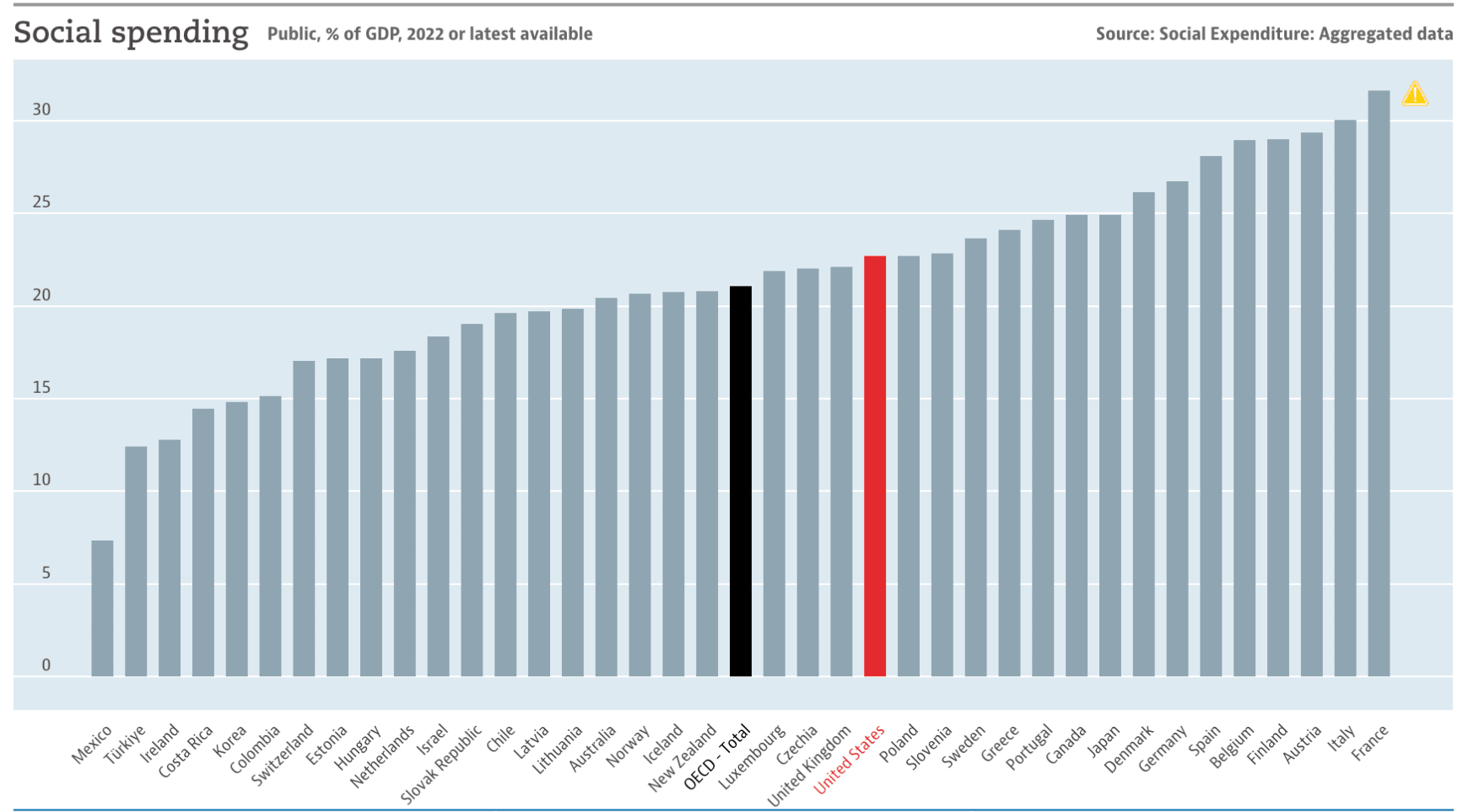 U.S. social spending is less effective due to bureaucratic burden and restrictions