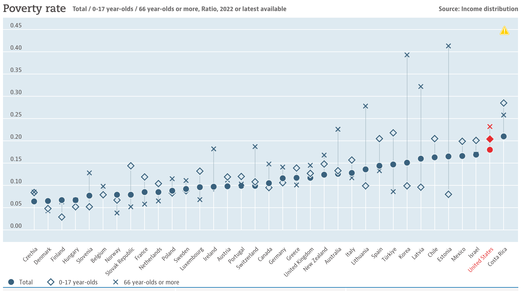 The U.S. has one of the highest poverty rates in of any wealthy country, despite above-average spending