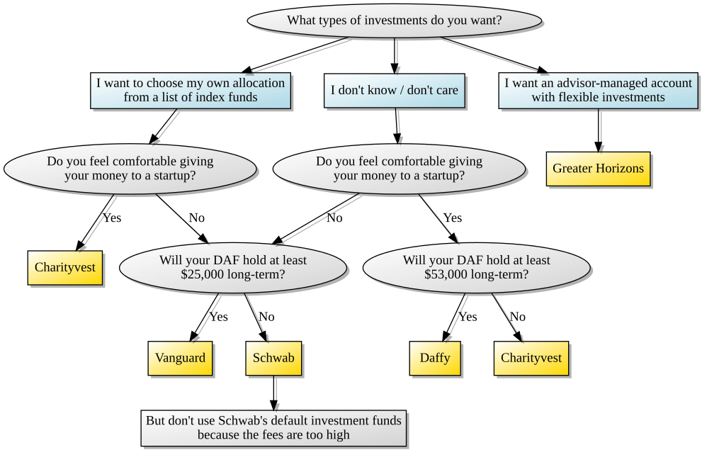 Otherwise, this handy flowchart can help you choose a DAF provider that fits your preferences.