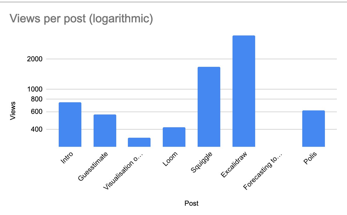 We didn't make any explicit predictions of impact, but I did feel surprised about the number of views we got on the Excalidraw video and the posts for Squiggle and Excalidraw (in all three cases, I was expecting us to achieve less reach).