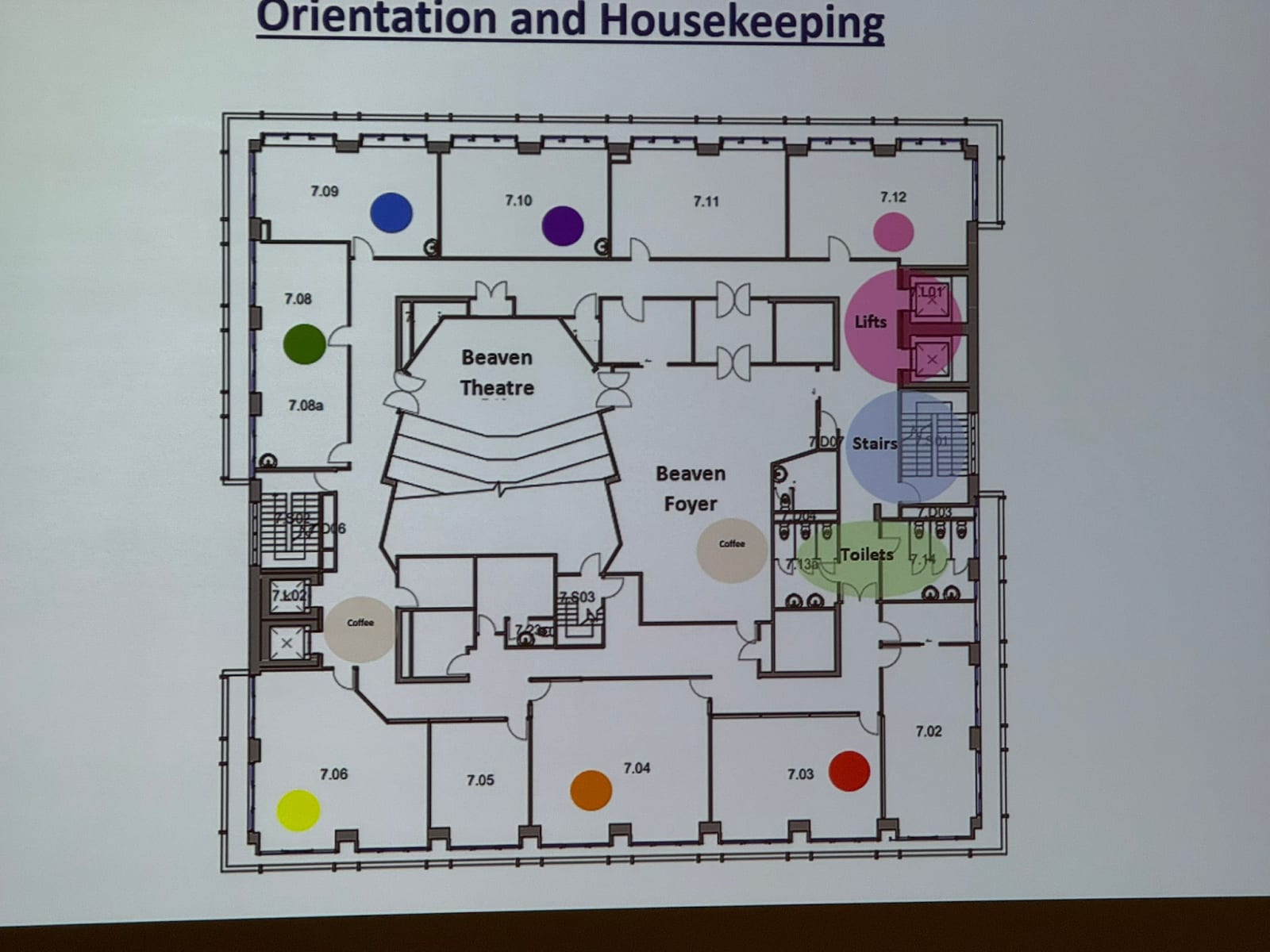 - The venue was great because it isolated and concentrated people together on the 7th floor for the day. The lecture theatre in the middle was both physically and symbolically the core of the event. This was supported by an abundance of breakout rooms available around the outside for people to sneak off and have 1on1s without ever being too physically distant from the action. Map below: