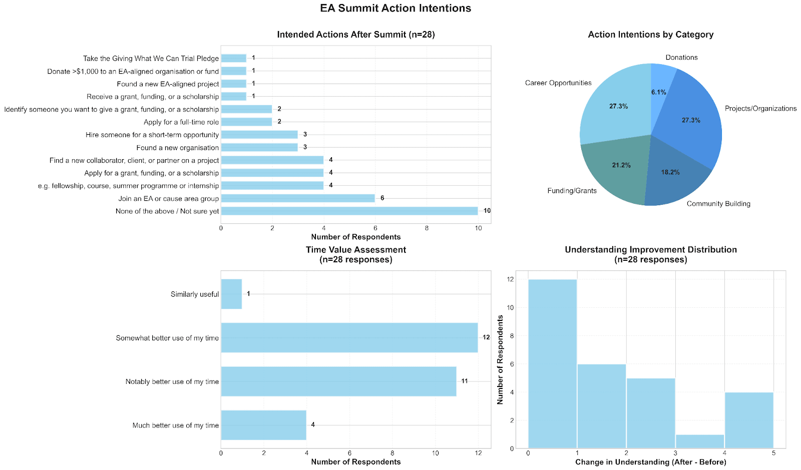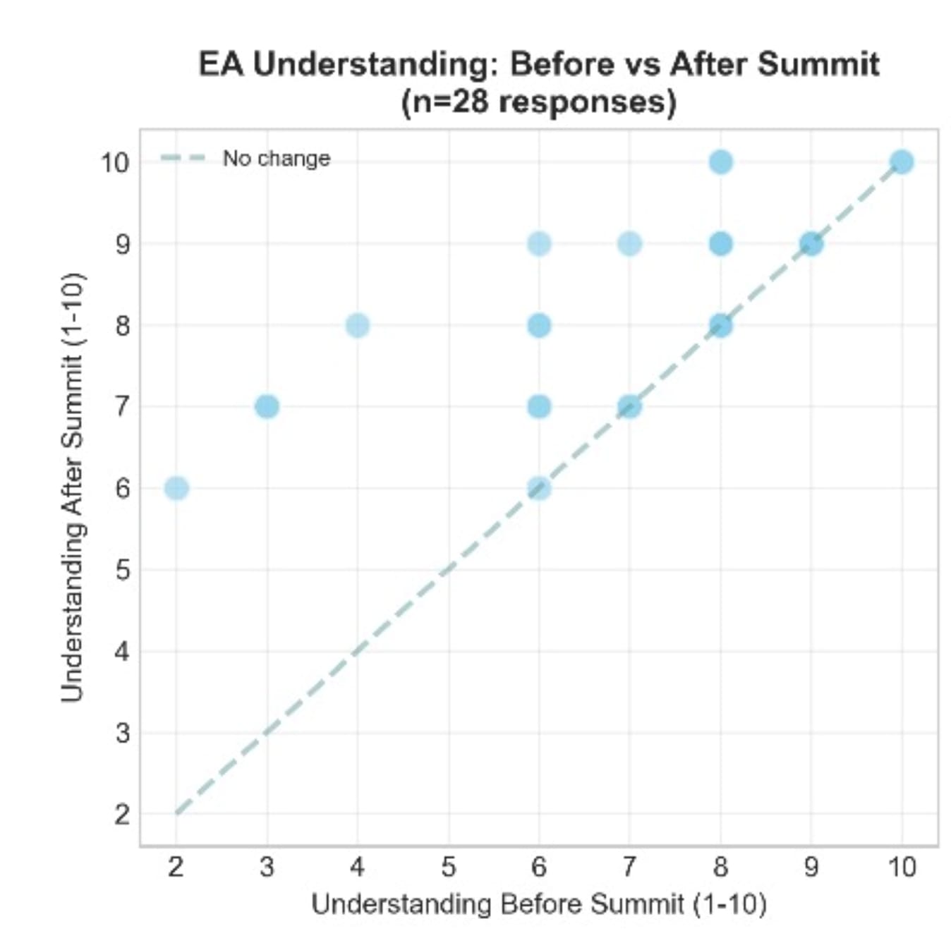 Finally, many attendees self reported an increased understanding of EA compared to their prior understanding.