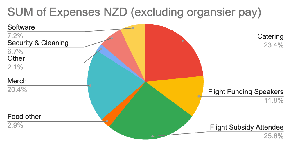 Funding for the event came from three sources: Ticket sales, a CEA Grant and a generous anonymous donation of $3k NZD for attendee travel expenses. We are very grateful to this donor, CEA and ticket purchasers, especially those who purchased ‘supporter’ tickets.