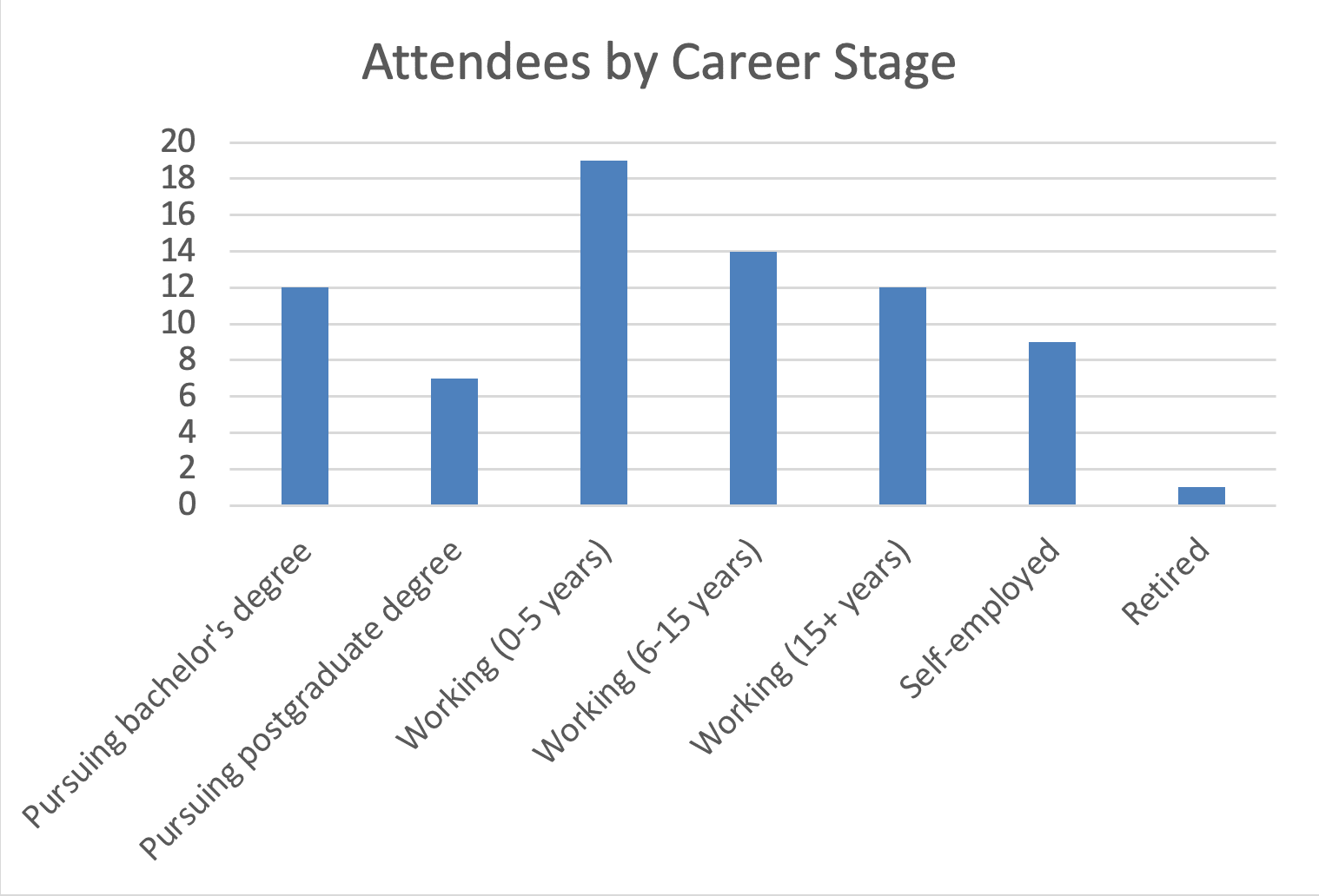 The most common career stage was “Working (0-5 years)”.