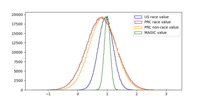 So I'll set the value at mean 85% of the MAGIC scenario, with lower variance than in worlds with a race.