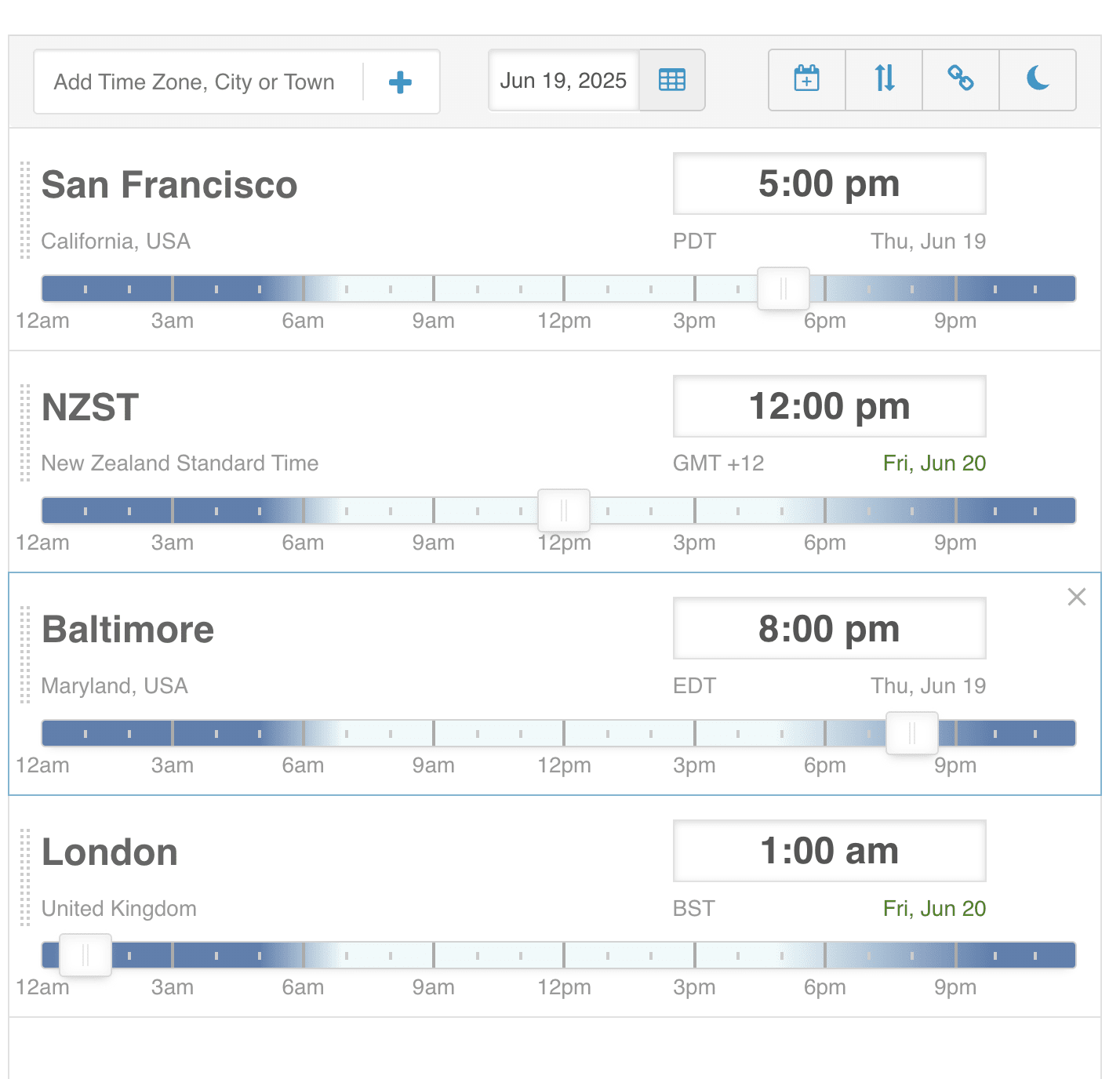 Time differences to a few other locations.