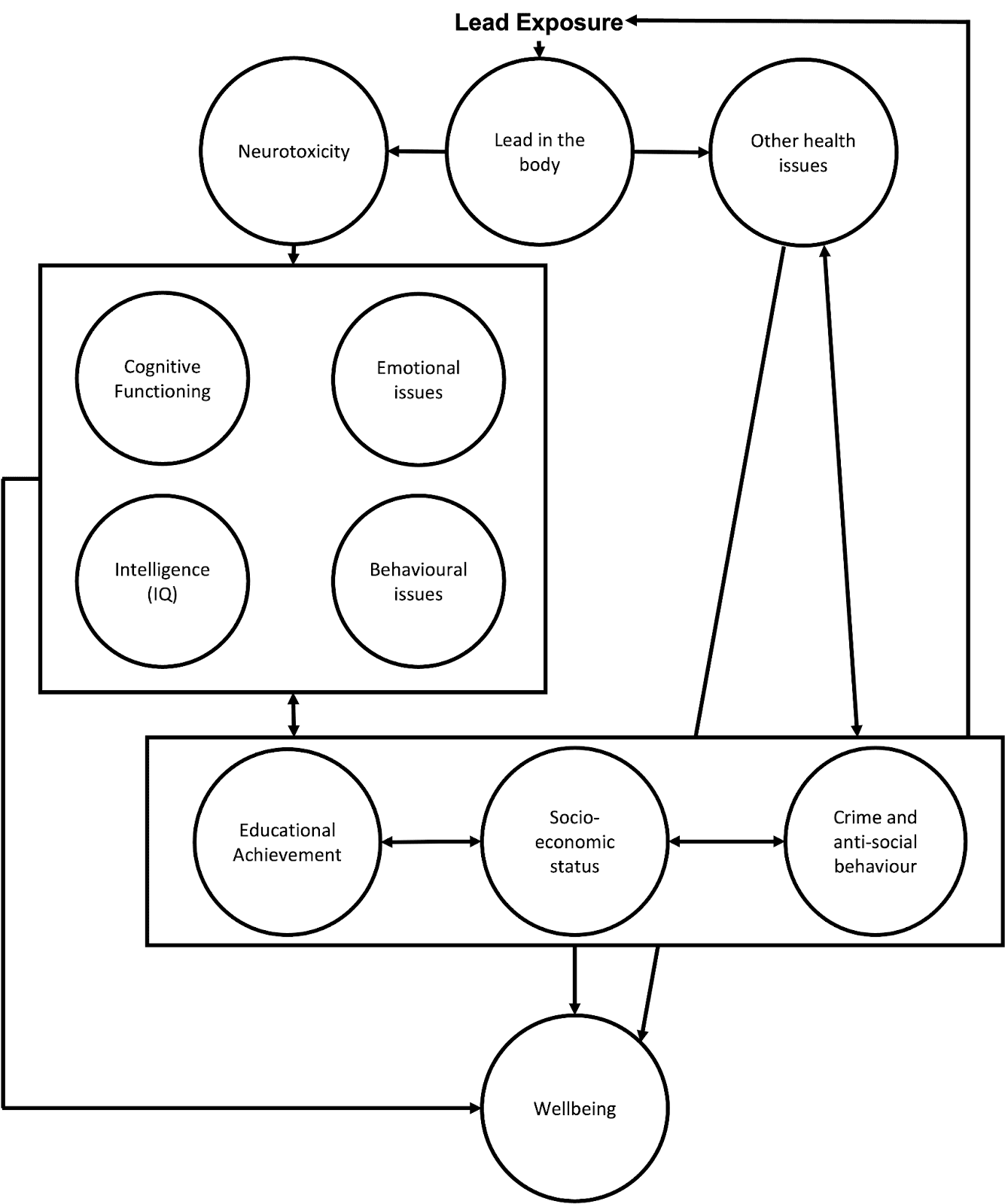 Figure 2: Lead exposure’s pathways to impact wellbeing.