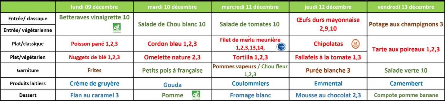 Here’s what a typical weekly school menu looks like in France (by the way, thanks to my mother for helping me go through these and sacrificing her eyesight for the animals):
