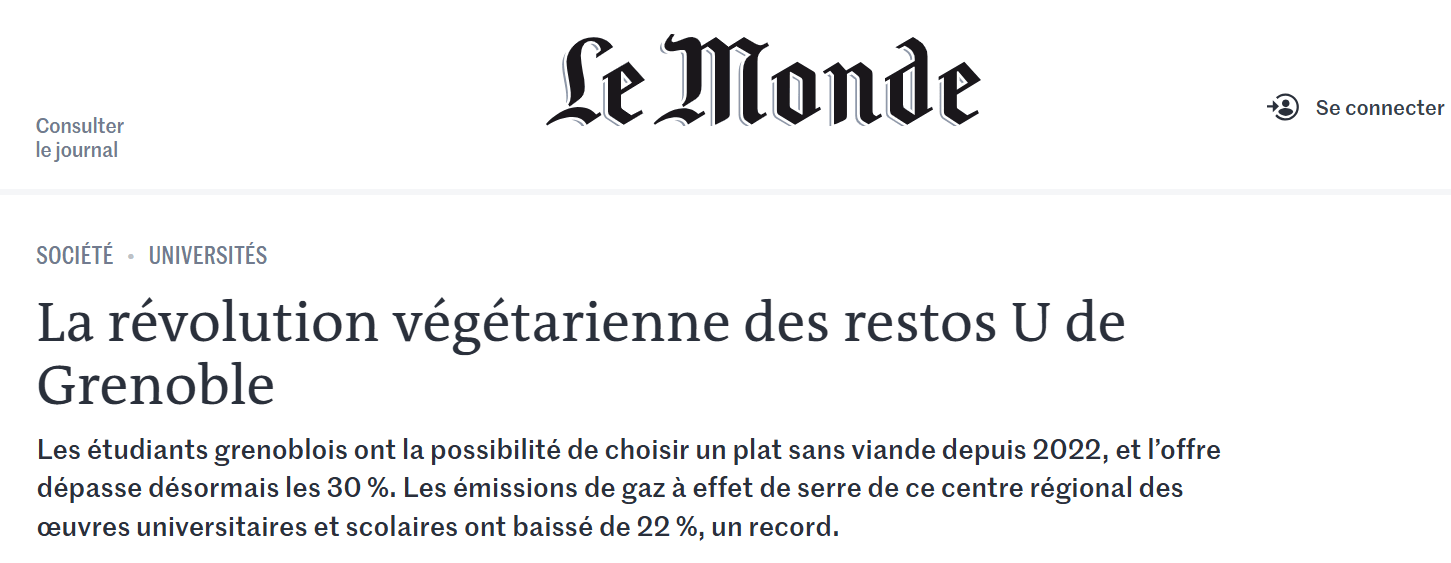 Le Monde—the most widely read French newspaper—recently covered the “Vegetarian Revolution” taking place in the university restaurants in the city of Grenoble.