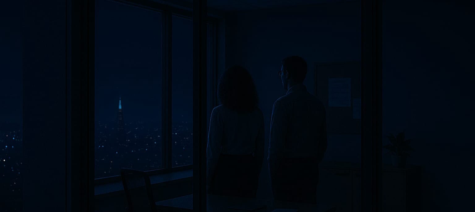 Amina stares out the window again. The rain has stopped, the clouds have cleared, and she can see the lights of the skyscrapers across the bay.