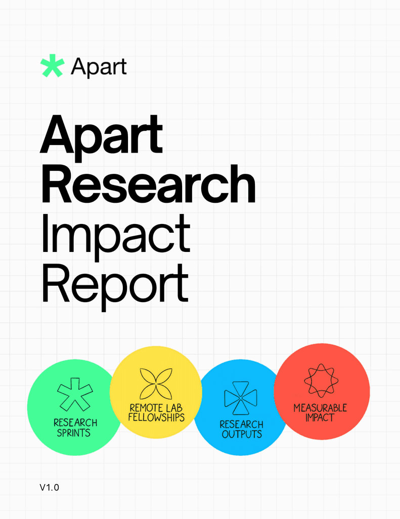 "Apart is focusing on mechanistic interpretability": Most of our earliest papers were related to mechanistic interpretability due to the focus of our former research director, but our agenda is really to explore the frontier of under-explored agendas, which also may lead to less attention for our work within AI safety. Our earliest work in 2022 was on the LLM psychology agenda and model-human alignment with much of our latest work being in metrology (science of evals), "adjacent field X AGI", and dark patterns; agendas that we generally believe are very under-explored. If we optimized for funding-friendliness, one could argue that we should focus even more on the agendas that receive attention and have open RFPs, but that is counter to our theory of change.