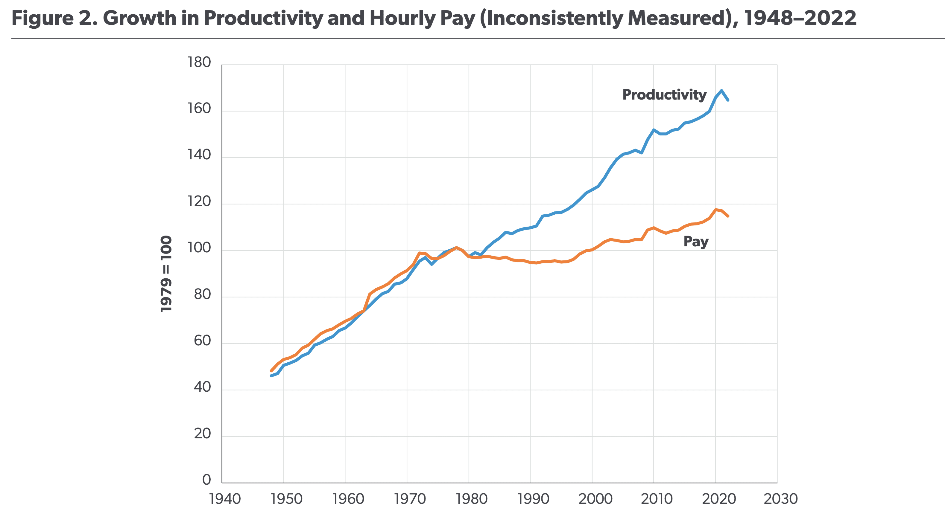 Regardless of who’s correct, these charts reveal how even seemingly simple metrics can be deeply contested below the surface. Making charts requires answering tricky questions like: Whose pay? What sort of productivity? And what features of the data are most salient?