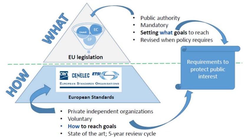 Figure 5. The continuous reviewed cycle of standardisation and legislation to ensure relevance of the legally-binding act (CEN-CENELEC, 2020)