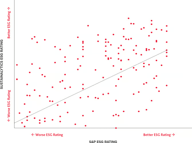 If we compare the correlation of the major ESG ratings providers, the result might as well be stochastic.
