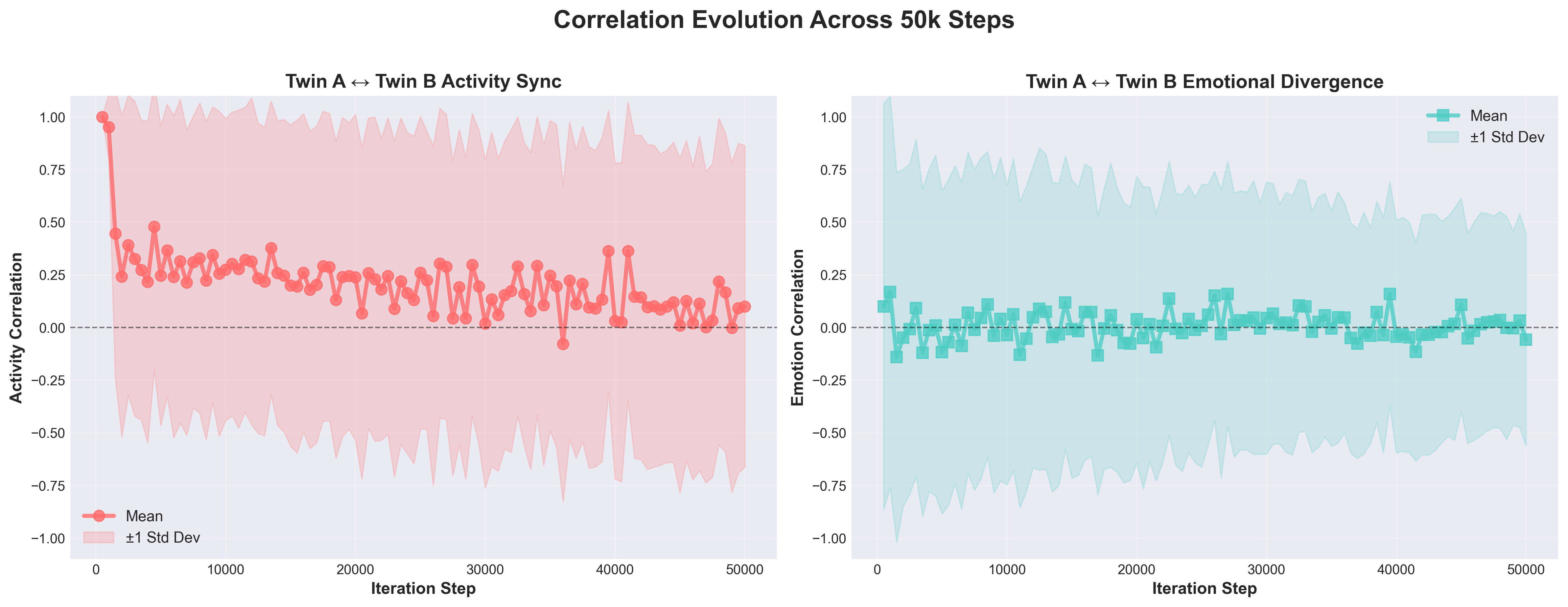- Individuality emerges before reward: even without RLHF or suppression, twin siblings develop distinct affective styles.