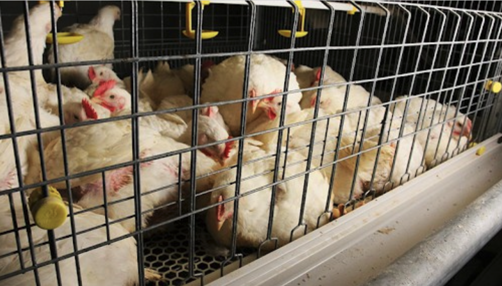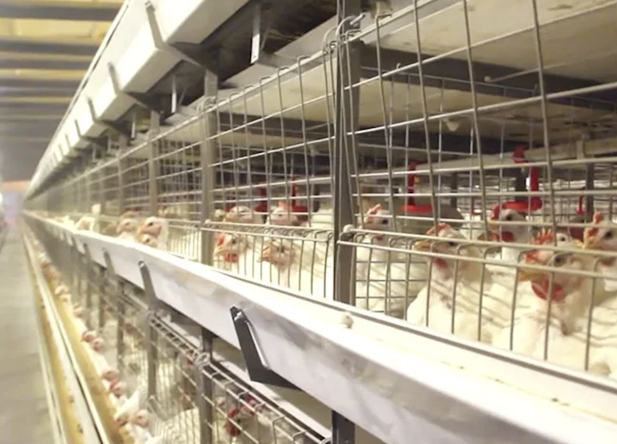 China produces roughly 15 billion broiler chickens per year. An estimated 60-70%— around 10 billion birds annually—spend their whole lives in stacked wire cages.