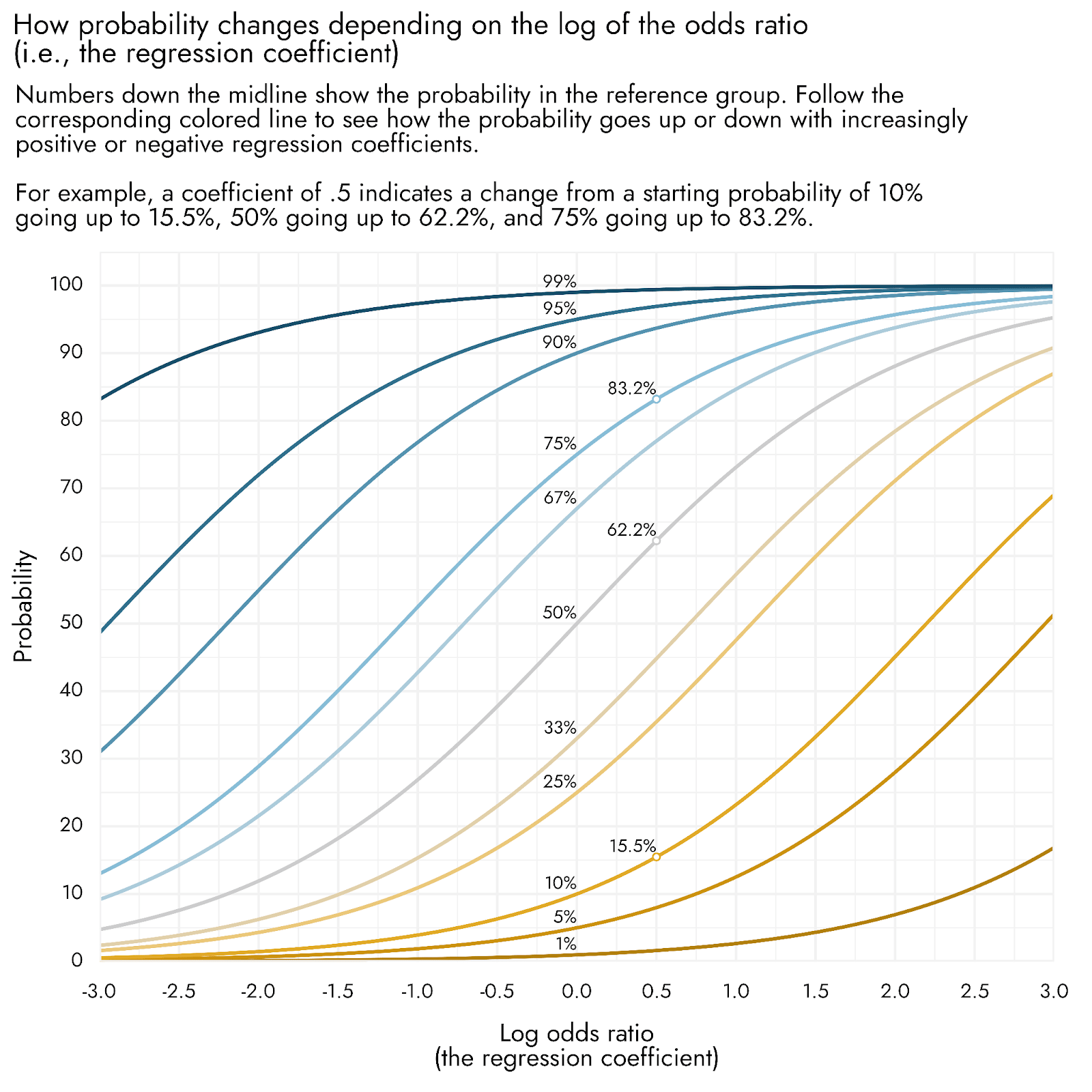 Figure 2: Visual aid for interpreting binary logistic regression coefficients.