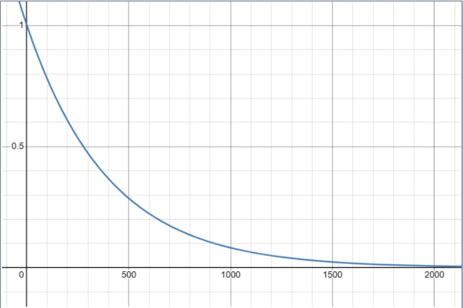 Secondly, the input value corresponding to the minimum suitability is chosen by identifying a potential target (through the process of identifying countries with nuclear arsenals) with the lowest population density. This ensures that the model considers the least suitable scenario, emphasising the importance of distance from potential targets. The lowest population density is found in Islamabad, which is approximately 2089 people per . As the function asymptotically approaches 0 but never intersects the x-axis, the chosen population input is when . The value 5 is commonly used in physics and modeling to represent completion. By comparing powers, b can be determined as b = \approx 0.0025.